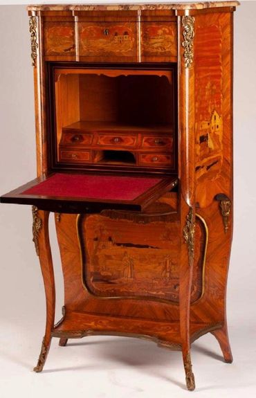 A fine French LOUIS XV/XVI Transitional STYLE MARQUETRY & MARBLE TOP SECRETAIRE, circa 1900.